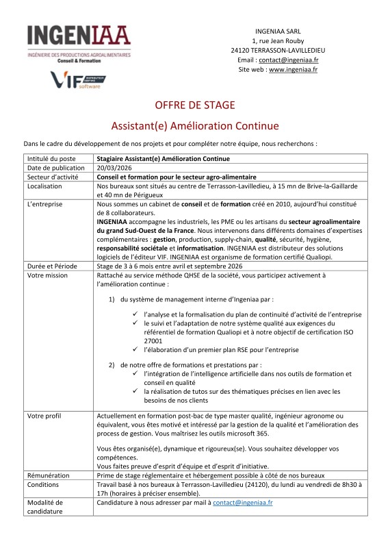 Alors n’hésitez plus, cette offre de stage « Stagiaire Assistant(e) Amélioration Continue » est faite pour vous.